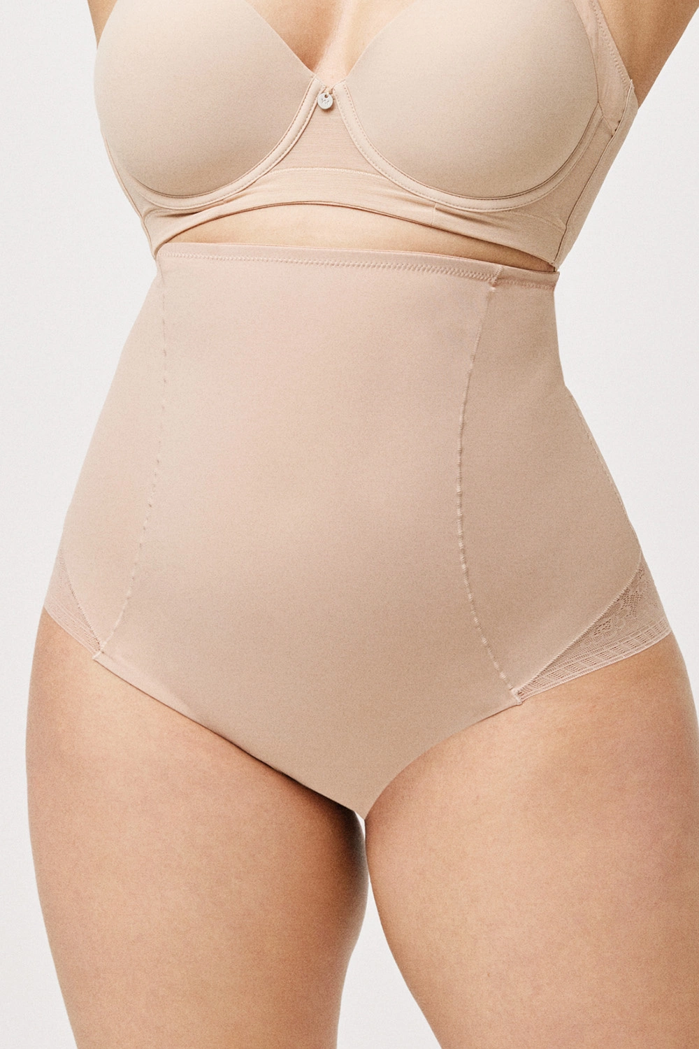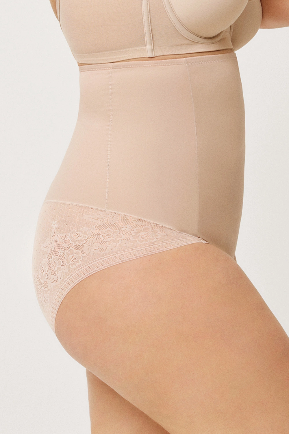 Majtki marki Ysabel Mora. Model 19618. Produkt został wykonany z 73% poliamid, 27% elastan. Majtki wysokie. Produkt damski. Zawiera silikonową taśmę podtrzymującą. Bielizna wyszczuplająca. Odzież modelująca.